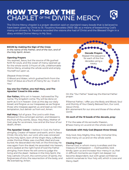 The Divine Mercy Chaplet is a wonderful prayer to add to your devotional life. Click the links below for more information on this powerful meditative prayer. This prayer can be recited on its own, in song, and as a novena.